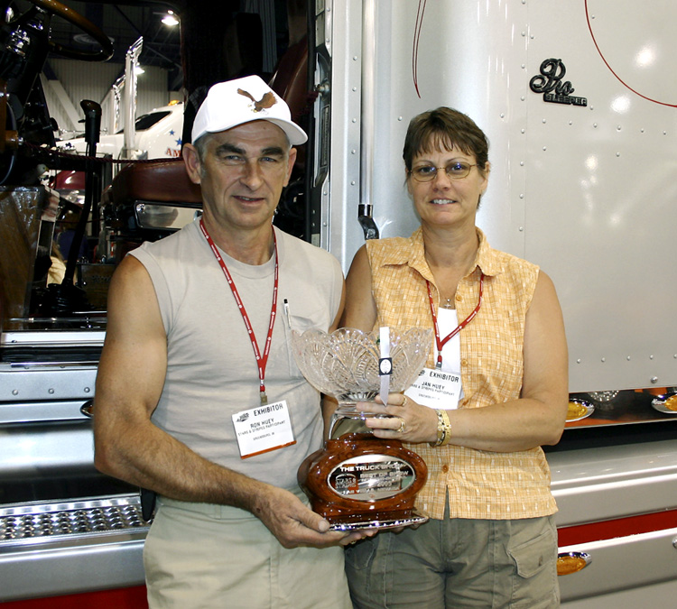 NEEDS YOUR HELP Show truckers will be saddened to learn that owner-operator Jan Huey, Ron Huey’s wife, was seriously injured on December 27th, 2006 in Cincinnati, Ohio. While waiting on a load, Jan decided to take a walk to get something to eat and was struck by a car. The impact of the car broke the femur bone on her left leg, but more tragic, the trauma of the accident caused Jan to have a stroke, which has affected the right side of her body and her speech. Her leg has since been operated on and is healing, but she has a long way to go in regards to regaining her speech and full control of her right side. She went home on January 25th and can now walk with a cane. Since they are owner-operators, they had very little medical insurance coverage because of the high price of premiums for self-employed people. Christina Newby, one of Jan’s daughters, is hoping some folks out there can help - in any way they can (maybe a fund-raiser or benefit event) to help this couple with the enormous medical bills they are receiving. Ron has been trucking since 1977 and Jan joined him on the road in 1997. The couple was operating as R & J Trucking out of Greensburg, Indiana, but after the accident, Ron sold his trailer, parked the truck, and took a job at the local International dealer so he can be close to home and help Jan with her recovery. Ron & Jan have competed in national truck shows with their silver 2000 International 9400 (the photo here was taken at the Truck Show Las Vegas after the couple won “Best of Show Bobtail” in 2005). For further information, contact Christina Newby at cmnewby@gmail.com. Donations to help Jan can be made to: Irwin Union Bank, Donation to Janice Huey, P.O. Box 929, Columbus, IN 47202-0929. We hope you can (and will) help. Copyright ©