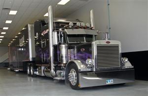 Every car needs to get to every race, so every team needs a transporter – and Gaines has one of the most beautiful, tricked-out transporters on the circuit. It only makes sense. After all, he owns one of the best trucking companies in the west, and this company, Western Distributing Transportation Corp. (WDTC), is known for being the cleanest large fleet around. V’s transporter is a 2005 Peterbilt 379X driven by Duane Radcliff. Duane has driven for the team for the past four seasons. The rig features a 625 horsepower twin-turbo C-16 Cat equipped with a Pittsburgh Power computer and an 18-speed Eaton transmission. Some of the truck’s custom features include polished aluminum front fenders from Peterbilt, a drop visor, shudder-style grill and 10-inch exhaust pipes. A whale tail wing on top of the sleeper finishes off the truck’s chrome. The truck is painted in a glossy black and features decals of sponsors, mainly Kendall Oil, plastered on the truck. Behind the sharp tractor is a 56-foot race trailer built by Elite out of Minnesota. The trailer features a picture of V’s car, as well as the Kendall Oil logo and the logos of other sponsors, including the newest sponsor, 10-4 Magazine.