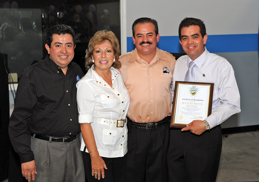 Between all of the eating and dancing, there were some announcements made and a “Certificate of Recognition” was awarded to J & R Fleet Services, which was presented by San Bernardino County’s Fifth District Supervisor Josie Gonzales, along with her field staff. J & R’s General Manager Javier Rodriguez, speaking of J & R’s success said, “We do one thing and one thing only – we fix trucks – and we do it well.” Javier also stated that 95% of their repairs were done on the same day and no appointment was ever needed. He went on to say, “Our guarantee is that upon three minutes from your arrival we will take your order, and within 30 minutes of authorization, a certified mechanic will start working on your truck.” It is that commitment to service that has helped J & R see a 40% rate of growth per year since 1998.
