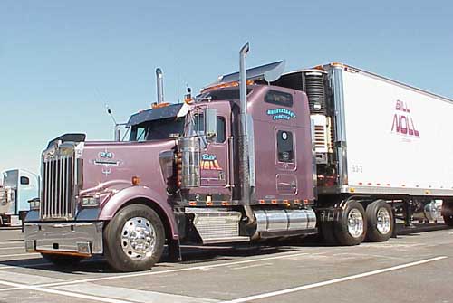This month’s “Readers And Their Rigs” came to our booth at the Las Vegas truck show and asked if he could be a future “Reader Rig” entrant. Jon Jaikes is the lucky company driver that gets to run this 2000 Kenworth W900L (pictured below) owned by Bill Noll Trucking out of Moscow, Pennsylvania. Called “Unnecessary Expense” for obvious reasons (Jon is an admitted Chromaholic) the truck has a 72” Aerocab with a couch, a 255” wheelbase, and is powered by a 475 Cat with an 18-speed transmission and 3:55 rears. Painted Wild Orchid Purple and decked out with some 126 lights (including neon strips that light up the stacks) and lots of chrome (both inside and out), Jon’s sharp truck pulls a 53’ Great Dane reefer with a Carrier unit. Hauling mostly truckloads of plastic pipes and fittings from Scranton, Pennsylvania to Los Angeles, California and then returning with produce, Jon criss-crosses the country twice a month. In addition to all the chrome inside the cab and sleeper, Jon’s KW is also a rolling Jeff Gordon memorabilia museum. Following the young NASCAR driver’s career from the beginning, Jon has cars, banners, license plates, pins, shirts, hats, jackets, keychains and more, all adorning Jeff’s car, number, name and face. Jon even numbered his truck #24 (Jeff Gordon’s number). Recently, after purchasing a bottle of “What-A-Shine” polish, Jon was so impressed that he called the owner (Ed) and offered to help him sell his products. Jon is now Ed’s official Marketing Director. Jon, who is 34 years old, has been married to his wife Carol for eleven years. They have two young daughters, Jessica (10) and Jennifer (5) whom he adores. Our thanks go out to Jon for showing such an interest in 10-4 Magazine. If you’d like to be featured in “Readers And Their Rigs” send photos and information to: 10-4 Reader Rigs, P.O. Box 7377, Huntington Beach, CA 92615. Good luck!