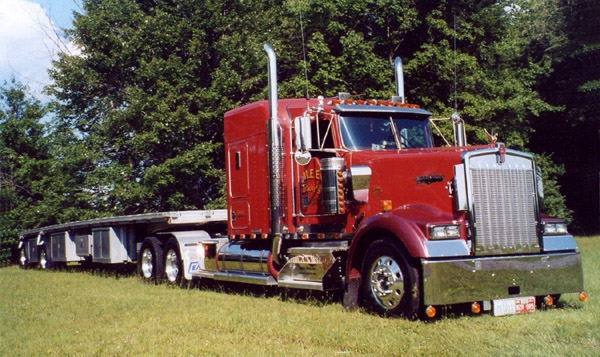 The Kenworth From Canfield Revisited Some of you might remember the “Kenworth From Canfield” that was featured on our May 1995 cover. Back then, Earl Evans of Canfield, Ohio, was showing off his red 1991 KW and 1987 Ravens Magnum trailer. Today, Earl is excited about his latest creation: a 2000 Kenworth W900L featuring a 72” AeroCab, a 3406E Cat engine, 18-speed Eaton transmission, Dana 3:08 rears (8 wheel lock up), 280” wheelbase, plenty of chrome and stainless, a Pro-Tech cab guard and chain box, aluminum wheels and hubs with centrifuse drums, LED lights, and a custom interior featuring a full gauge and switch package done by Truck Interiors. Behind the red tractor with maroon fenders, Earl pulls a sharp 48-foot 1998 Ravens Eclipse flatbed with a Hendrickson 250 Intra Suspension, 10’ 2” spread, four boxes by Highway Products, sliding winch track, 37 pairs of tie-downs, all LED lights and a lightweight side kit. Earl’s company, M.E. Evans Trucking, specializes in hauling general flatbed freight throughout the 48 states and Canada. Earl (45), who has been driving for over 27 years - the last 22 as an owner operator, believes in the sanctity of trucking. The popular phrase and logo stating, “Without Trucks America Stops” can be found not only on his business card but also his company letterhead. Anyone who’s been around trucking as long as Earl knows that statement is true. Obviously he takes a lot of pride in what he does - that is reflected in the quality of his equipment. Famous for his scenic photographs, Earl once again sent us several terrific shots of his truck and trailer, as he did some seven years ago. Thanks for thinking of us (again) Earl and congratulations on your newest “Kenworth From Canfield”. |