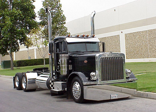 HARD WORK FINALLY PAYS OFF This month’s Readers And Their Rigs features owner operator Enrique Vanegas (34) of Moreno Valley and his restored 1988 Pete 379. Enrique is no stranger to hard work (he’s been trucking since he was 16), but to him restoring this old classic was not work, it was therapy. He purchased the truck as a frame and axles only from a friend who had “parted it out” for his fleet. Being a guy who loves to “search” for the right parts at the right price, Enrique found the cab, 425 Cat engine and 15-speed overdrive transmission at local wrecking yards in Southern California. The hood was purchased new from Peterbilt. The long and low truck has a 275” wheelbase and special air bags that lower the truck. Enrique also upgraded the stock front axle with a car hauler axle to help lower the rig. He also customized the suspension brackets to lower it even more. The bottom of the 23-inch boltless bumper sits just 3 inches off the ground. The sleek black truck also has Double JJ headlights, a 12-inch wide butterfly visor, 7” straight stacks, hand-made polished aluminum 1/4 fenders, 120” aluminum deck plate, chrome driveshafts and chrome spring brakes. The interior features customized door panels that are black with royal blue flames, a chrome dash, an 18-inch wood steering wheel, air seats that can go all the way to the floor, 23 toggle switches with blue jewels and 14 gauges with chrome bezels. After two years of hard work, perseverance, passion and dedication, Enrique’s dream became a reality. Enrique has been married for 15 years and has four children. His kids love to help him clean the truck. Enrique hauls corrugated boxes and rolls of paper for Crockett Container Corp. in Santa Fe Springs, California. We are proud to say that Enrique has enjoyed reading 10-4 Magazine, from cover to cover, each and every month for the last seven or eight years. |