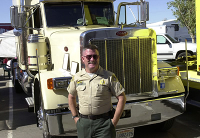 TRUCKING FOR THE TAXPAYER This month’s Readers And Their Rigs comes to us from Deputy Sheriff Robert S. Watkins of the Los Angeles County Sheriff’s Department. Based out of Whittier, California, Deputy Watkins works in the Technical Services Division and runs one of the Department’s Federal Excess Property Units - more specifically, a decked-out 1988 Peterbilt 379. Covering the 11 western states, Deputy Watkins and his partner Deputy John McClure pick up excess items from military bases for the Sheriff’s Department. The items vary from toilet paper to heavy machinery, and everything in-between. When the Department expresses a need, Deputy Watkins searches through the military’s inventory on his computer. If he finds something available, it is his job to go pick it up. The program was started back in 1969 and was designed to save taxpayer’s money. Deputy Watkins attends local truck shows whenever possible to educate the public about the program and have some fun. The beige-colored truck (one of two) is powered by a 444 Cummins and features a 13-speed tranny, a 254” wheelbase, extra lights and chrome, and recently added full fenders (which he won in a raffle at the Cherokee Truck Show last May). The truck pulls either a drop-deck, a flatbed or a 45-foot van, depending on the load. Robert has been a Deputy Sheriff for over 24 years and really enjoys his job - especially since he got the gig to drive the rig three years ago. With a background in trucking, he was perfectly suited for the position. Look for Deputy Watkins and his clean Pete at a truck show near you or out on the road, working hard, helping save taxpayers over $4 million a year. Thanks Bob! |