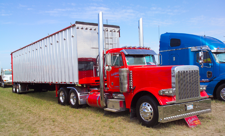 Cory Cloward’s Passion Pays Off This month’s Readers And Their Rigs comes to us from Cory Cloward of Double C Commodities in Oakdale, California. At only 26 years old, Cory is the proud owner of this beautiful red Pete that recently beat out the competition at the truck show in Lodi - despite the fact that the truck was wrecked just three weeks before the show. He was on his way to pick up his first load of the day when he came around a blind corner and hit an 1,100 lb. Angus cow. The crash took out his bumper and left fender, warped the hood, bent the front wheel and crushed the driver’s side stack. Cory was lucky to escape without injury but devastated at the fact that he would not be able to make it to Cherokee’s annual show. He took the truck to Bill Rocha’s shop, expecting him to say it would be weeks before he could even start, but, to his surprise, Bill said, “Order the parts so we can get this thing back together.” They not only got it back together, but also added ghost flames to the hood and fenders! With the truck good as new (or better), Cory was able to make it to show and win 1st Place. The truck, which pulls a Western belt trailer and hauls feed up and down California’s Central Valley, is covered with LED lights, has a 12” drop visor, 8” stacks and an 18” American Eagle bumper. The interior features Bostrom Low Rider seats, lots of Rockwood accessories and a booming stereo. Cory wanted to thank Bill Rocha, his brother Troy, Curly Reynolds and Mike Costa for all their help, but mostly his wife for her love and understanding when it comes to his passion for trucks. We’d like to thank Cory for being such a devoted reader and congratulate him on a job well-done! |
