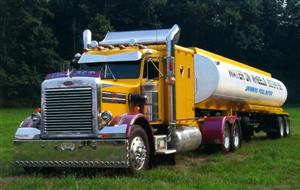 READERS AND THEIR RIGS - JULY 2005An Oldie But a Goodie From Jersey This month’s Readers And Their Rigs comes to us from Shane Conklin of SRC Trucking in Johnsonburg, New Jersey. Shane purchased this 1979 Pete 359 nine years ago. At that time, it was painted black, had a 220-inch wheelbase, an 8V92 Detroit, 13-speed transmission and 4.11 rears. It was clean but plain. The first thing Shane decided to do was to get rid of the Detroit, opting instead for a 350 Cummins, and then decided it wasn’t long enough so he cut the frame in half and stretched it out to its current length of 296 inches. Next, the tranny was upgraded to a 15-speed model and then the truck was painted yellow. A year later, he decided it needed a little more color so he painted the fenders magenta. Later, the rears were changed to 3.70’s, eight-inch stacks were installed, and, again, the motor was changed - this time to a 425 Cat. Recently, the roof of the sleeper and cab were painted magenta (after photo was taken) and a mural of a scantily-clad cavewoman and a Saber-toothed Tiger was added to the back of the custom 60-inch Double Eagle sleeper with heart-shaped windows. This truck works every day - most of the year it hauls water and for a few months in the winter it pulls a 48-foot drop-deck. All of the work done on this rig (including changing the engines, stretching the frame and the paint) was done by Shane, his father and his brother in their own shop. The mural was done by “Pooch” from Swift Water, PA. We’d like to thank Shane for sharing this oldie but a goodie with us and our readers. His bug shield says “Class Act” and by the looks of it, Shane and his rig are just that. Copyright