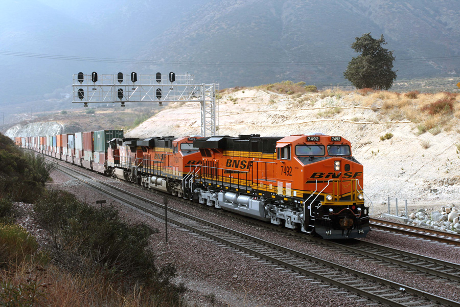 There are two mountain ranges (the San Gabriel and the San Bernardino) that are separated by the Cajon Pass on the outskirts of Southern California. The pass was traversed by Native Americans for centuries, then mountain men such as Jedediah Smith and Kit Carson. Several wagon trails including the Spanish Trail, the Mormon Trail, the Santa Fe Trail and the Mojave Trail converged on this pass, which was the only negotiable gateway between the High Desert and the Los Angeles Basin. Because of its great economic importance, the Santa Fe Railway built the first rail line over the pass in 1885. The original track, now named Main Track 3, has a 3.4% gradient and directly traverses the summit. As the area grew, so did the demand for trains. In 1913 Santa Fe Railway built Main Track 2, which has a lesser grade of 2.2%. You may be wondering, “Where is Main Track 1?” Well, that turned out to be a $90 million project that was completed in November of 2008 by the Burlington Northern Santa Fe Railway (BNSF). With the completion of this expansion, there are now two tracks with the lesser grade and three total main lines through the pass. During the four-year project, over 1,000,000 tons of earth was moved, 42,000 concrete railroad ties were placed and 30 miles of track were laid. BNSF also worked diligently to protect the area’s historical and cultural resources. The ability of railways to efficiently move more products will help to rebuild this nation’s economy. As more freight is transported by rail, more trucks will be required to haul the commodities from the railroad centers to the outlying areas. The Cajon Pass project was a win-win situation for all involved!