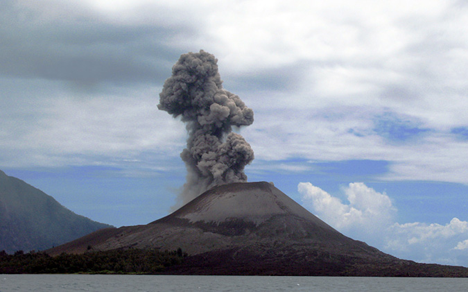 In August of 1883, the small volcanic island of Krakatoa, located in the straits between Java and Sumatra, blew itself into pieces. The volcanic activity was first noticed in May of 1883 by passing ships, but on August 27, 1883 a series of four cataclysmic explosions caused approximately nine square miles (two-thirds) of Krakatoa to collapse beneath the sea. When Krakatoa exploded it was equal to the energy of 200 megatons of TNT – about 13,000 times more powerful than the atomic bomb dropped on Hiroshima. The eruption ejected about five cubic miles of rock, ash and pumice into the sky and generated the loudest noise (which was clearly heard almost 3,000 miles away) ever recorded. Shock waves from the explosion, measured by barograph, traveled around the earth seven times. The eruption also created a huge 131-foot tsunami that destroyed hundreds of coastal villages along Java and Sumatra and killed an estimated 36,000 people. After the top of Krakatoa exploded and the bottom collapsed into the sea, the volcano seemed to have disappeared forever, but in 1927 a posthumous child, Anak Krakatau (Indonesian for “Child of Krakatoa”), began to rise from the depths of the water at the very same spot. Created by smaller, ongoing eruptions occurring over the years, Anak Krakatau has been gradually growing ever since (averaging about five inches a week since the 1950s). By 1973 it measured 580 feet tall; it’s now up to 900 feet. Krakatoa was the largest volcanic eruption in recorded history, and it will probably, at some point, erupt again. It is amazing what nature can throw at man, yet, through all the fury, man survives to tell the tale.