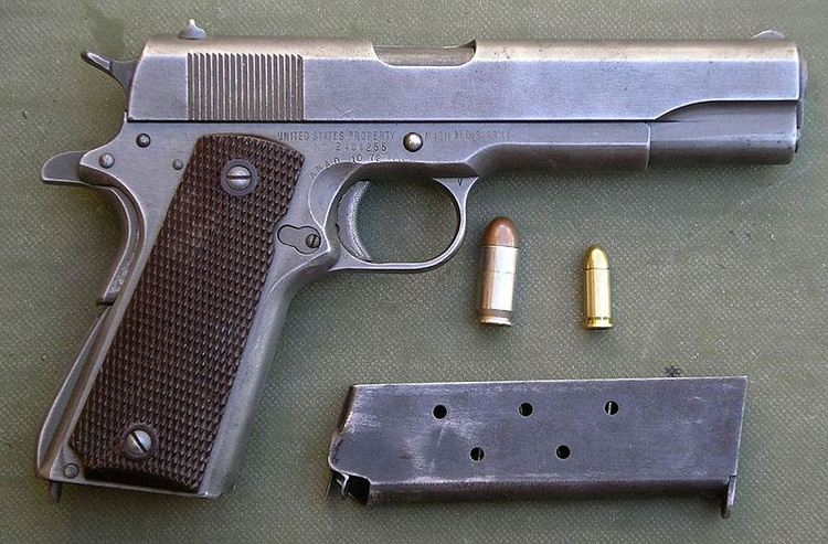 When he was 28, a traveling salesman from the Winchester Repeating Arms Company purchased one of Browning’s single-shot rifles. The salesman was so impressed with his work that he showed the rifle to the President of Winchester, and from there it lead to a 19-year business agreement. In the first eight years of that agreement, John sold 20 new designs to Winchester. During Mr. Browning’s lifetime he designed firearms for Winchester, his own company (Browning), Remington, Savage, Fabrique National (in Belgium) and Colt. Browning, who built 80 different firearms and was the most important figure in the development of modern automatic and semi-automatic firearms, is credited with 128 gun patents. Browning’s most successful designs include the Colt M1911 semi-automatic pistol (see photo), the Browning .50 caliber machine gun, the Browning Automatic Rifle, and a ground-breaking semi-automatic shotgun, the Browning Auto-5. All of these designs are still in production today, more than 80 years after their inventor’s death. The U.S. military used the M1911 pistol as their official sidearm for decades until it was replaced in 1985, but it is still manufactured and reproduced today, making it one of the best selling and most copied pistols of all time.