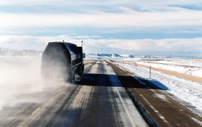 The worst conditions to drive in are freezing fog and whiteouts, conditions that make the road both slick and hard to see. In these conditions, slow down and leave more distance between you and other vehicles. You can’t stop on a slick road like you can a dry road. That may seem obvious, but watching some drivers, I don’t think they see the difference. And don’t be one of those drivers who make sudden moves in front of someone else (that puts you both in danger). Also, in cold weather, when getting your truck moving from a standing still position, start out slower than usual - grease in the rear-ends and transmission will take longer to warm up and get to the areas where lubrication is needed.