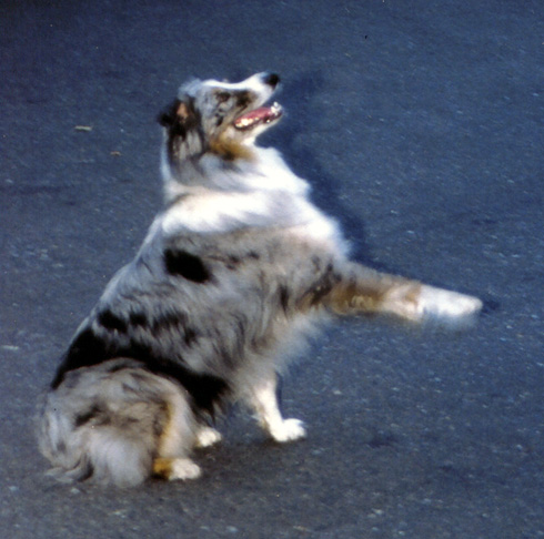 Pete says Cyrus is a fast learner when it comes to doggie tricks. He knows sit up, bow, wave, and roll over, play dead, give ya 10, and fetch the paper. A nudge from his nose translated means, “I’m hungry dad.”