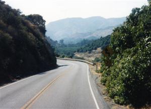 We loaded oranges in Porterville and had to go to Gonzales to finish out with carrots. Looking at the map I thought, why go clear up to Hwy. 152 or back down to Hwy. 46 when you can just go across Hwy. 198 to Hwy. 101, then head north up into Gonzales? I asked the guy who had loaded us if this was a good road for trucks and of course his reply was, “Trucks run that way all the time.” Don’t always trust the guy on the dock! It was good until we got west of Coalinga, but I (Kim) was petrified till we got on top of a hill where I could stop and we could switch seats. Of course, after that, the road got considerably better. Rod kept saying, “My, isn’t it pretty up here,” and I kept telling him to take pictures because we weren’t coming back! At the time, we were driving a cabover Freightliner and pulling a 45-foot trailer. So if you are new to California and think this looks like a good shortcut, mark it off of your map – it’s NOT!! Beautiful ride, yes. It didn’t take the several overturned loads of tomatoes and oranges, sitting on the sides of the road, for me to figure out that this road was made to run in a car. I now understood why it was such a great idea to run up to 152 or back down to 46.