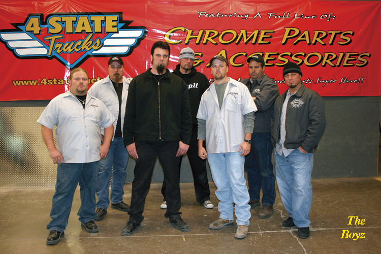 MARCH 2006 TRUCKER TALK With everything else these days being built, made over or traded, wasn’t it about time they got around to doing big trucks? And Country Music Television (CMT) did it in grand style by giving the show “Trick My Truck” (TMT) a chance to let the truck drivers of America shine! Bryan Martin and his Chrome Shop Mafia (CSM) division of 4 State Trucks in Joplin, MO, along with Ryan “Ryno” Templeton, Rod & Kevin Pickett, CB Grimes, Scott St. Germain, Scott Draeger and Rob Richardson, turned eight everyday work trucks into true head-turners. We recently had the good fortune of having work done to our truck by some of the guys who worked on the CMT trucks. And while in Joplin, we got to talk to the guys about the experience. Without these guys and the sponsors, there wouldn’t have been all these really cool trucks! This “Mafia” you want to do a “job” on your truck! And they can. All you have to do is get to Joplin, Missouri. But you should call for an appointment first, because the boyz are pretty busy these days. We want to dedicate this months’ column to Bryan’s father. Larry Martin passed away suddenly on September 24, 2005 before ever getting to see any of the TMT trucks completed. But longtime family friend Gailand Johnston begged to differ, saying, “He got to see them – he’s watching over us now.” Talking with Bryan he told me, “Anything we have now or ever hope to have, we owe to dad; he taught us how to work and how to treat people right.” I wish we’d have known Larry, but we never had the chance to meet him. One thing I’m sure of is that he is very proud. I did get to meet Linda, Larry’s wife (Bryan’s mom), and what a sweetheart she is (everyone calls her mom). In the little bit of time that I got to visit with her, I can understand why. There have been a lot of stories written about the show and the trucks, but we thought it might be nice to help you get to know the “boyz” behind the show a little better and divulge some “insider” information. All the guys with the Chrome Shop Mafia are the best! Bryan Martin (AKA The Don) is in charge of the whole operation, but he doesn’t do it alone. Some of the behind the scenes helpers that did a lot of work but weren’t on the show included David Burkey, Aaron “Al” Dockery, Joe Overfelt and Brian Swartz. Awesome work done by all – I know this because they’ve worked on our truck.