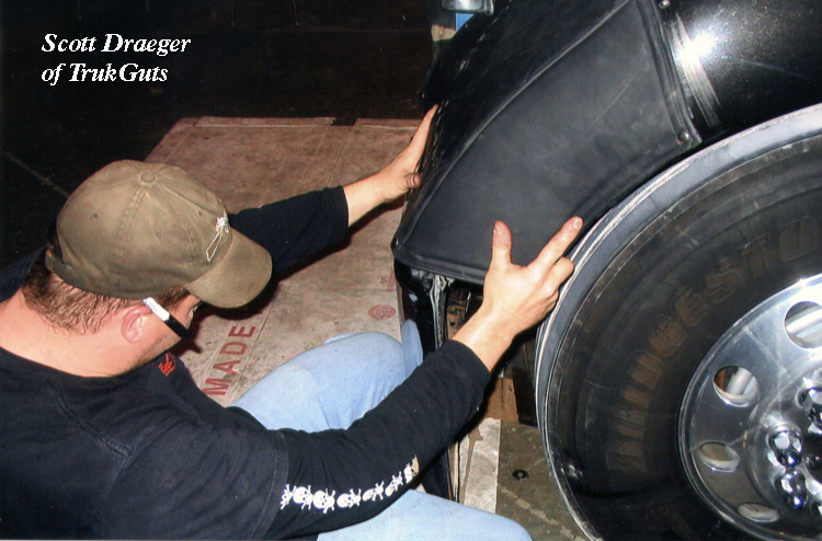 Then I had the pleasure of spending two days with my new friend, Darlene Swift of Taylor Ridge, IL (thanks Dave Carson). She is the only woman to have her truck tricked out on the show. Fearing that the boyz would give her a “girlie” truck covered with pink bunnies and a hot tub, she was pleasantly surprised with how it turned out (black and orange with horse silhouettes outside and a bamboo waterfall inside). While Darlene was driving the loaner truck furnished by Western Star, she stopped at Barloworld Freightliner in Springdale, AR. Adam Arrington questioned her about the “My other truck is being tricked by CMT” graphics on the side so she explained how her truck was getting a complete makeover. She told him that when it was done she knew that 50 miles down the road the oil leaks from her engine would make her new rig a mess (the makeovers are strictly cosmetic – no work is done to the drivetrain). Adam told her that he would see what he could do – maybe Detroit could do an overhaul for her to complete her makeover. They did better than that! Detroit sent a remanufactured engine, complete with turbo, sensors, air compressor, AC compressor, flywheel housing, a new radiator and chrome valve covers! Even the Detroit logos on the side of the engine had been hand-painted. And Barloworld Freightliner had John “Coop” Cooper install it. This man not only installed the engine but he also took the time and care to clean up and paint the old parts that were being reused. He did an awesome job. The old parts looked as good as the new ones. Darlene REALLY got a makeover, both inside and out! Heck, she practically got a whole new truck. The show is only a half hour long, but we all know it takes months to do what these guys did to these trucks. All of the guys spent long days and short nights, working together to make this happen, taking time away from their families and loved ones to do this outstanding job. Gailand Johnston pointed out the true heroes of this story – the guy’s wives. Sometimes left at home alone for days or even weeks, they really picked up the slack which allowed these guys to do all the work and make this show happen. Hopefully, CMT will have another season of TMT – and with all the talk I have been hearing about it, I can’t believe that they won’t (even people not involved in trucking are stopping their channel surfing to watch). I really like the way the guys worked to make the truck perfect for the driver – they had concepts to work with and they really pulled them off. At the beginning of the show, when they “take” the trucks, remember it’s still a little bit Hollywood. To make the show as interesting and fun as possible, some things may have been embellished a little, so don’t get so freaked out about the shape of the trucks. We hope you enjoy the show as much as we do. These guys put so much into this project, and I’m proud to say that it’s a show that doesn’t involve arguing or throwing things. All roads lead to Louisville this month. This year we’re showing the (new and improved) big truck and taking the model of her to remind us how easy it was last year! And this year, I’ll be left with no time to get a sunburn! Stop by the 4 State Trucks booth and meet all the Chrome Shop Mafia guys – they are all the best at what they do. And be sure to visit the 10-4 Magazine booth as well. They’ll have plenty of free posters and magazines, as well as great pictures and t-shirts for sale. We would like to thank David, CB, Joe, Al and Bryan for all the work they did on our truck. Bryan, you’ve got a great group of people working for you. And the best part is that being on TV hasn’t changed any of them. And Scrapyard, I’d like to thank you most of all for NOT working on our truck! Copyright