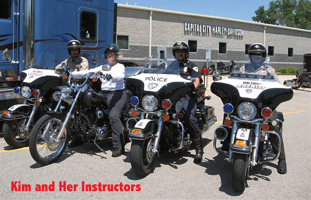 The class is limited to only 8 people so that there can be more one-on-one help. My classmates were a great group as well – four of them were young (being in the 17-22 age range), but these “kids” gave me hope for the younger generation! Two others classmates were there to get their license to help save money driving back and forth to work (motorcycle registrations are going through the roof as fuel prices continue to soar). My classmates were Khatera Hakimi (the only other girl), Jerry Gibour, Rick Schulte, Patrick Mahoney, Dan Peterson, Vlad Avesalon and Jason Lochinger. Our instructors were off-duty motorcycle cops – Steve Mueller and Randy Wiessinger are with the Dane County Sheriffs Department, and Bill Murphy is with the Madison City Police. All of them really love riding and it showed in the way they taught us.