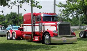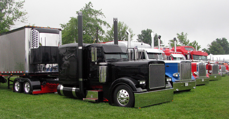 Featuring green grass instead of a black parking lot and plenty of room to spread out, the Macoupin County Fairgrounds was an excellent venue. Last year, I talked to Bette as she was leaving Mickey’s first World of Large Cars show and she was just raving about how nice Mickey had been and how great the trucks (and people) were. When I got there, I understood why she was so excited about the whole set up – it was perfect! About 90 beautiful trucks and their owners and drivers gathered together for this show to remember all our friends. If you were a Peterbilt fan, this was the place to be.