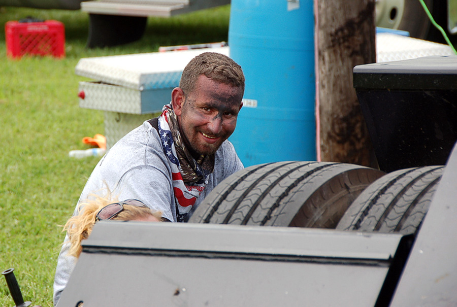 Last year, Mickey had show attendees pick the three trucks that would go on the T-shirt for this year’s show, and this year he asked Bette’s family to pick one of the trucks for next year’s shirt – they chose Brad Caton’s blue and silver Eilen truck. In addition to Brad’s rig, Mickey chose Jake Eileen’s truck and his brother’s (Jonathan Eilen) car hauler to be on the 2010 shirt. The one award that was given out at the show, the Truk-Rodz award, went to Jarrod Russell and his rust-colored Peterbilt and cattle trailer.