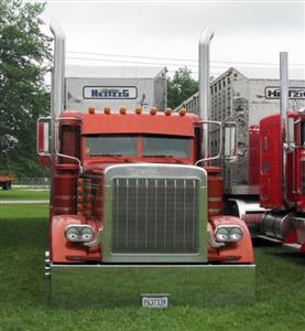 Jake’s first truck show was Louisville in 2003, where he won all of the awards for his class. He did that with his black truck with orange flames called HD 100. Contrary to what many people think, that “HD” doesn’t stand for Harley Davidson – it stands for Hundred Dollars – which is what he would spend (at least) whenever he went into the Harley Davidson shop. HD 100 was also picked that year to be in the 2004 Shell SuperRigs calendar. That kind of start would hook most any driver! Look for Jake’s last truck in the upcoming 2010 Shell SuperRigs calendar. The Eilen family brought this truck, and others, to Carlinville in memory of Jake.