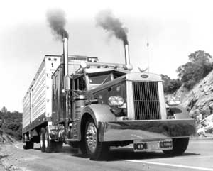 Few rigs have captured the imagination, the hearts, and the attention of both truckers and the motoring public as much as El Turbo - the famous 1949 Peterbilt (pictured on left) owned by Gene and Hilda Smith of Gridley, California. A Cummins Big Cam 400 and a 13-speed transmission, backed by a 4-speed “progressive” tranny, gets this metallic green dream machine down the highways. During its heyday, El Turbo was a common sight, delivering food products up and down California. Currently, El Turbo is enjoying “the good life” appearing at a host of truck shows, and was recently featured at the national truck show held in Reno this year, put on by the American Truck Historical Society. El Turbo has been featured on posters, coffee mugs, baseball hats, silk embroidered jackets and wrist watches. No other Peterbilt has ever been featured in so many trucking magazines, both nationally and internationally. This rig has also appeared in an assortment of truck books, including my first book, American Semi Trucks, on page 76 (in color). Happy holidays to you all out there! |