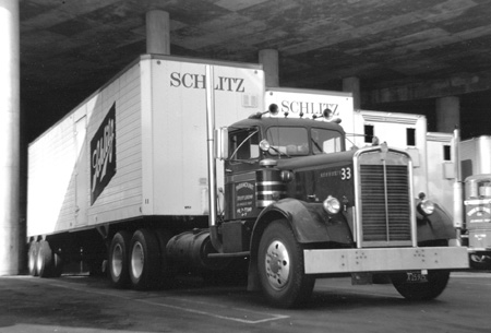 This Kenworth is seen here with a 40’ “box” trailer, pulling for Schlitz