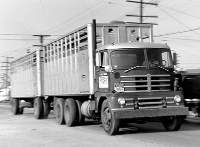HOPPER TRUCK LINE’S OLD TIMERS Words and Photos by Truck Historian/Author Stan Holtzman Seen in this 1957 photo is a Diamond T cab-over going south on Greenwood Avenue, enroute to its Montebello (CA) terminal. The owner, Hopper Truck Lines, was based in Phoenix, but had its Los Angeles yard in Montebello. Back in the 1950s, Montebello was the center for all of trucking in the Los Angeles area. Hopper hauled LTL freight from California into Arizona, and returned with loads of Arizona cattle. This was accomplished by steam-cleaning the bodies and trailers after the cattle were unloaded and before freight found its way onboard for the return trip to Arizona. Colors of the Hopper fleet (which was mostly made up of Kenworths and White Freightliners) were a dark red and white. Hopper “bit the dust” in 1971, becoming part of ONC which in turn was bought up by McLean Freight Lines who, in turn, went out of business in 1986. I would like to hear from any of the old timers that drove for Hopper Truck Lines. Please contact me through the magazine by calling (714) 378-9990. I look forward to talking with you. |