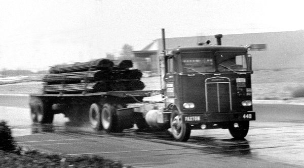 TRUCKS SHOOTING THE TUBE Words and Photos by Truck Historian/Author Stan Holtzman Pictured here, cruising down Tube Way in Commerce, California is a late model 1950s or early 1960s Kenworth cab-over owned by Paxton Truck Lines of Montebello. For over 30 years, the dark green Paxton rigs were seen hauling steel and related commodities all over California and in the nearby Western states. Paxton’s yard, in the late 1950s through the 1970s, was located on Greenwood Avenue (like so many others in trucking), just north of Anaheim-Telegraph Road. The fleet of Paxton tractors consisted of Kenworths, Peterbilts, Autocars and White-Freightliners. The company also had some leased rigs that hung the Paxton sign on the doors of their trucks. I don’t know if deregulation or organized labor had anything to do with the demise of Paxton, but they have been gone from the trucking scene for over 20 years now. If any of you old timers out there that can tell me what happened to Paxton Truck Lines, I’d love to hear from you. Please contact me through the magazine by calling 1-888-440-4104. |