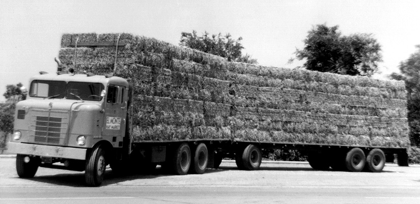 Pictured here is a 1950s Kenworth cab-over that belonged to El Monte Hay Market. The El Monte Hay Market fleet was a common sight along the California highways in the 1950s and 1960s. The El Monte fleet consisted of Autocars, White-Freightliners and Kenworths, and their colors were grayish tan with red lettering on the doors. It was common to see El Monte’s rigs hauling hay and alfalfa in the Bakersfield and Lancaster areas of California and, in the spring, the trucks could be seen pulling loads near Yuma. Power was generally a 220 or 250 horsepower Cummins with a 5 & 3 for transmissions. The El Monte fleet picked up additional trucks from Weaver Hay, thus making El Monte Hay Market a sizeable fleet. I don’t know why or when this outfit bit the dust, but maybe an old-timer out there can shed some light on their demise. I can be reached through the magazine at 1-888-440-4104. Be sure to check out my website at www.linerigs.com today. |